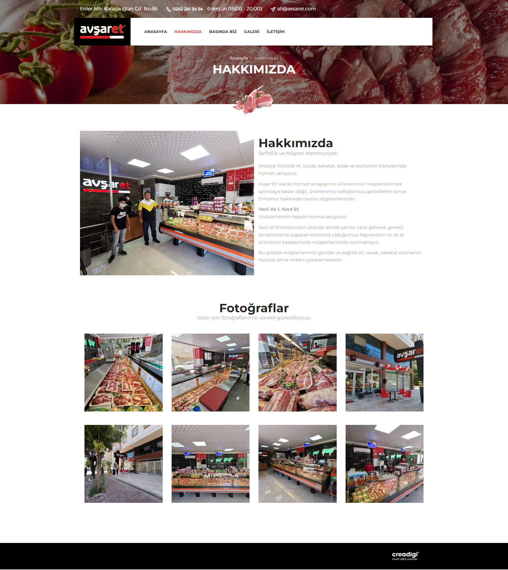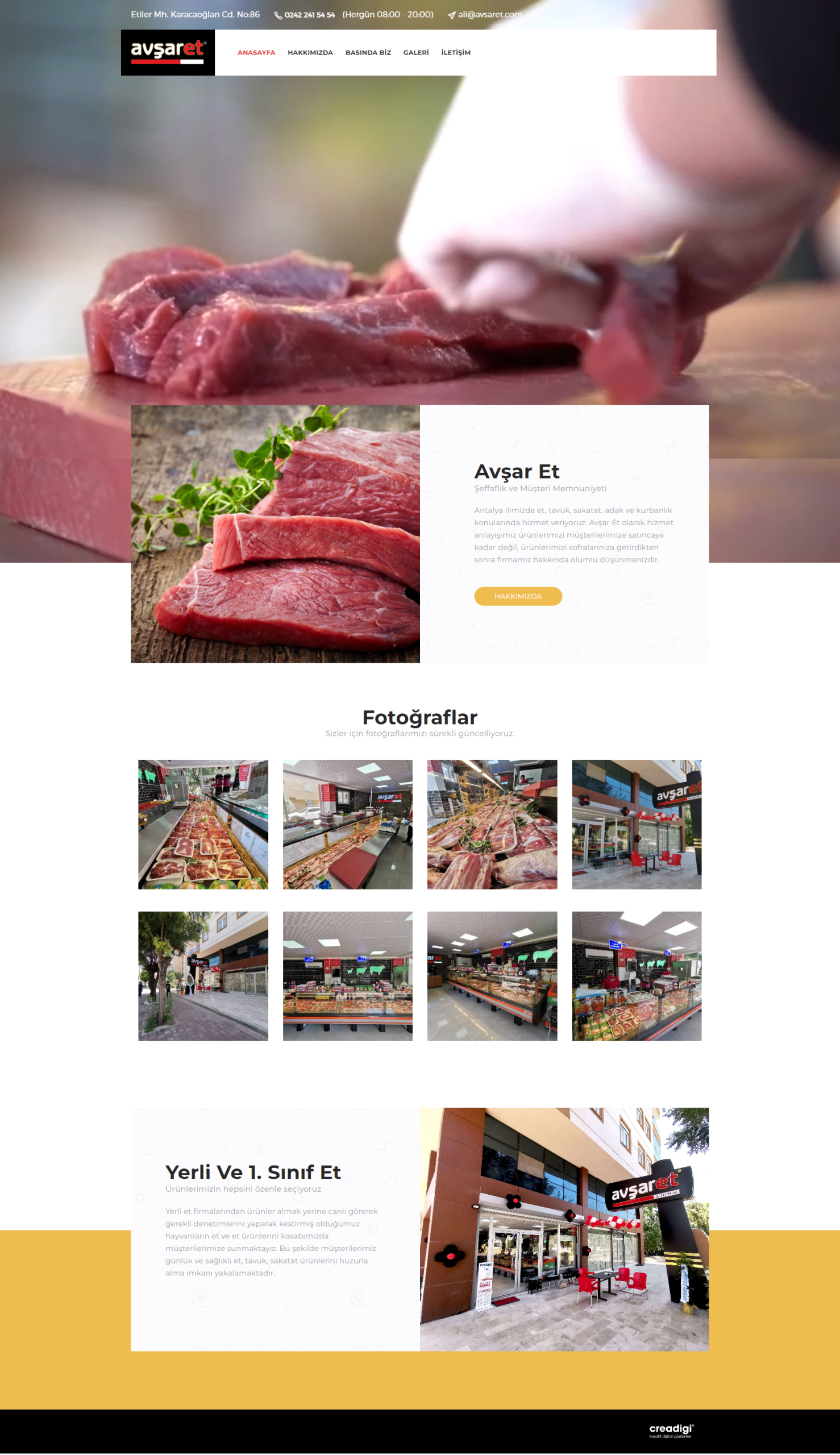 Avşar Et için, et ve kasaplık ürünleri alanındaki kalite ve güvenilirliğini dijitalde etkili bir şekilde sergileyecek, teknik altyapısı sağlam, kullanıcı odaklı, SEO optimize edilmiş ve mobil uyumlu bir kurumsal web sitesi tasarladık ve geliştirdik. Bu projeyle, markanın yerel ve birinci sınıf ürünlerini, modern ve estetik bir arayüzle sunan, dinamik fotoğraf galerisi ve detaylı "hakkımızda" bölümüyle müşteri güvenini pekiştiren bir dijital platform inşa ettik. Web sitesi, Avşar Et'in fiziksel mağaza deneyimini destekleyerek, dijital görünürlüğünü ve potansiyel müşteri iletişimini artırma hedefine hizmet etmektedir.